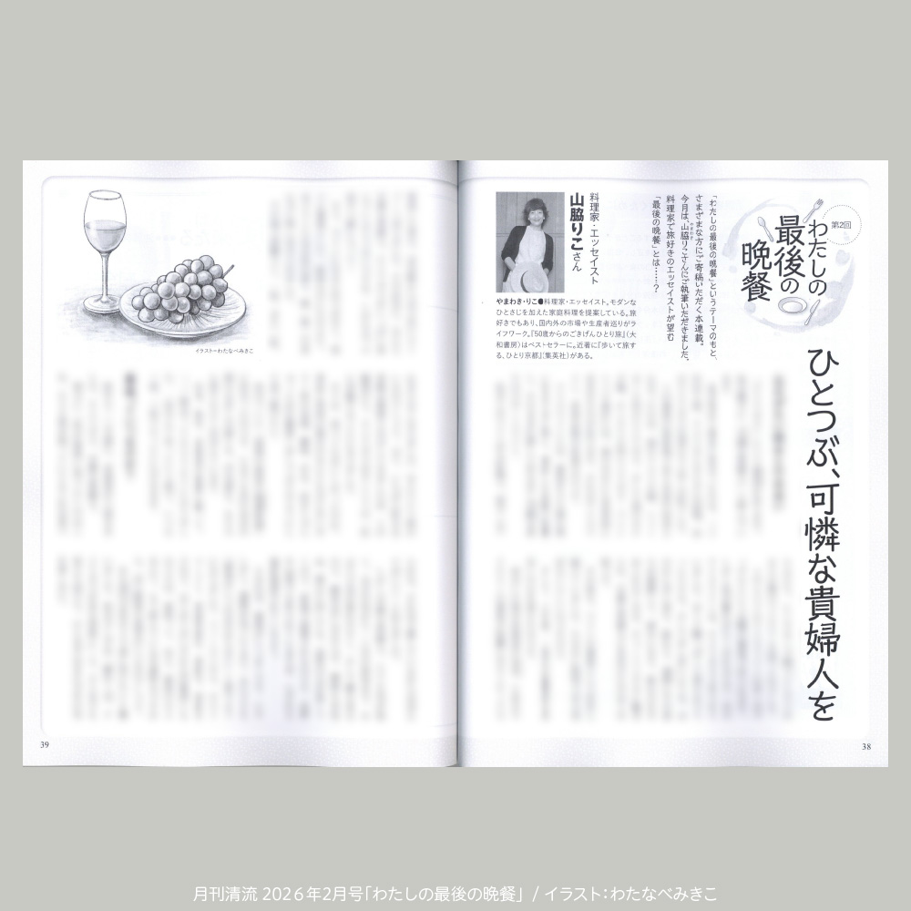 月刊「清流」の連載「わたしの最後の晩餐」、挿絵を担当しています。